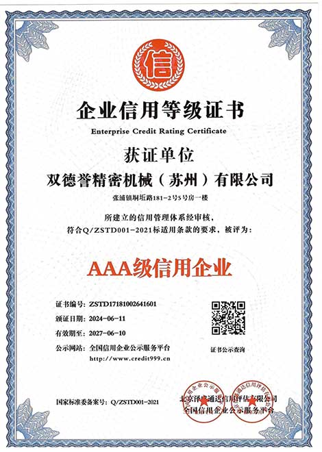 企業信用等級證書-雙德譽精密機械(蘇州)有限公司