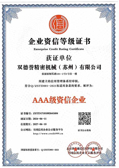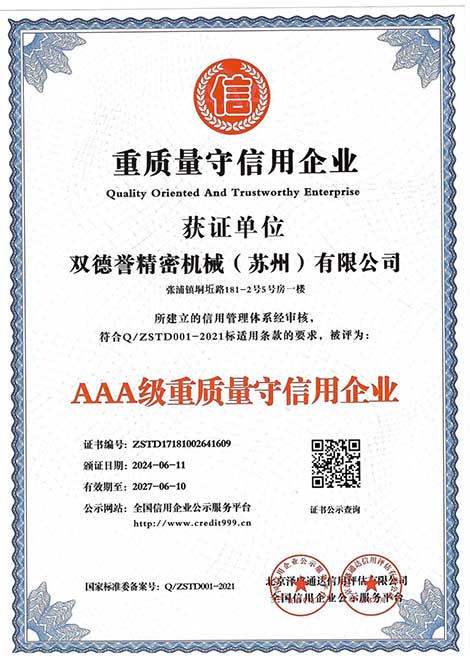 重質量守信用企業-雙德譽精密機械(蘇州)有限公司