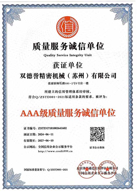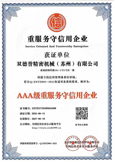 重服務守信用企業-雙德譽精密機械(蘇州)有限公司